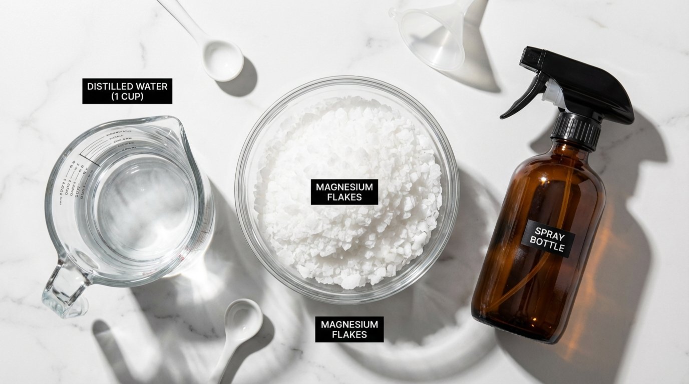 - 1/2 cup Magnesium Chloride Flakes: (Crucial: Do not use Epsom Salts/Magnesium Sulfate; they are less absorbable and leave a white residue). Look for “Zechstein Seabed” flakes for purity.