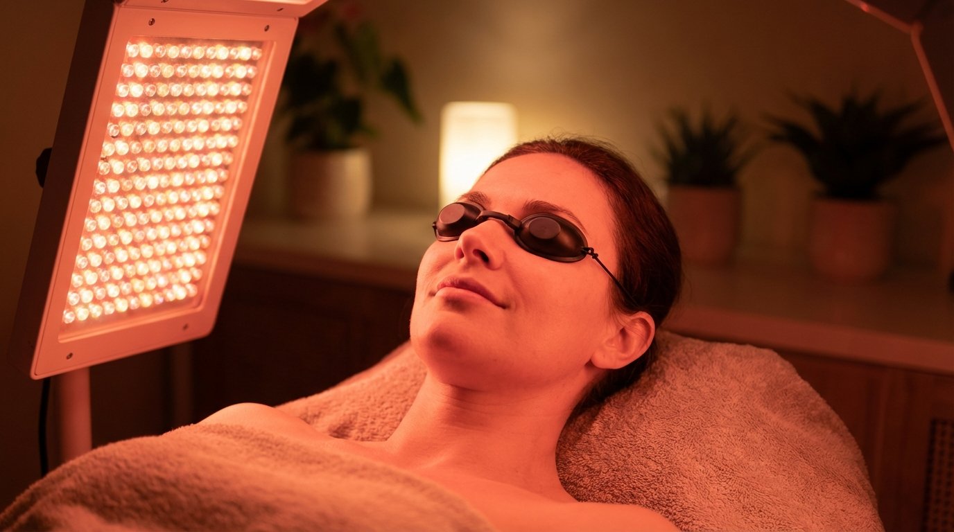 2. Evening: Red Light Therapy (Wind down and repair).